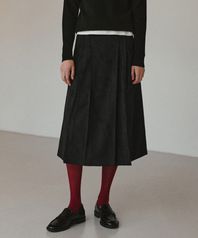 신세틱 스웨이드 플레어 롱 스커트 [블랙]