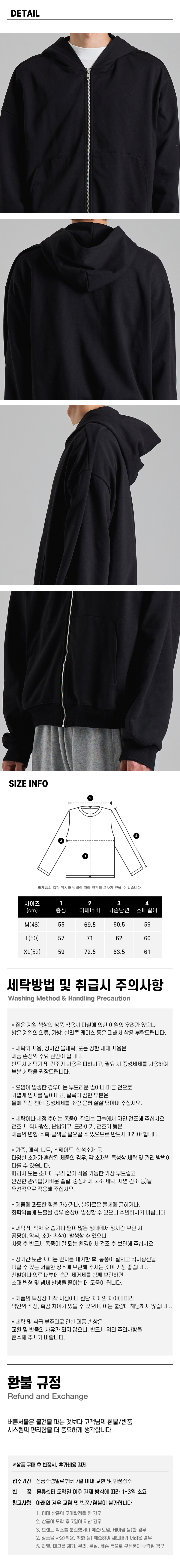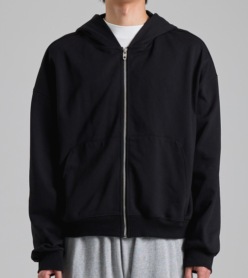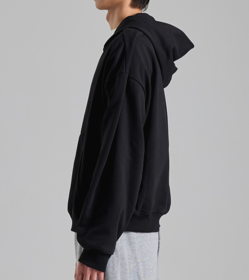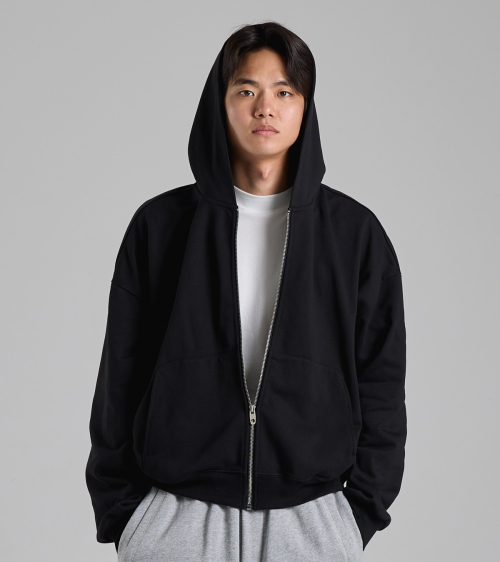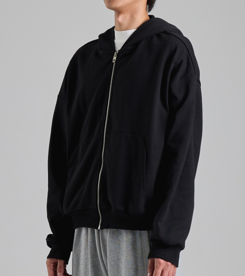 라운드 포켓 미니멀 후드 집업 (블랙)
