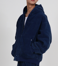 워싱 코듀로이 후드 집업 블루종 (아쿠아 블루)