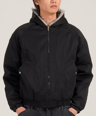 세미 크롭 라쿤 퍼 코튼 후드 집업 나그랑 워크 자켓 (블랙)
