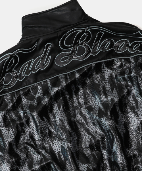 콘트라스트 레더 트랙 자켓 - 블랙파이톤