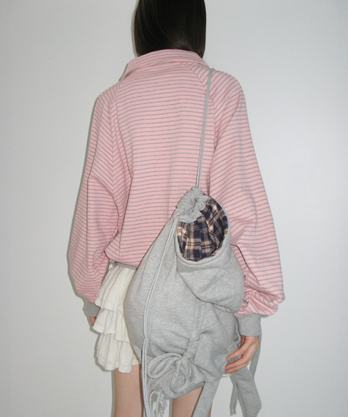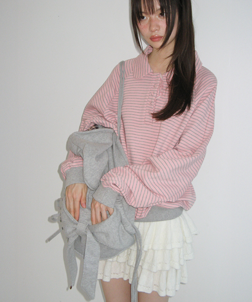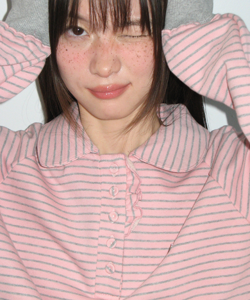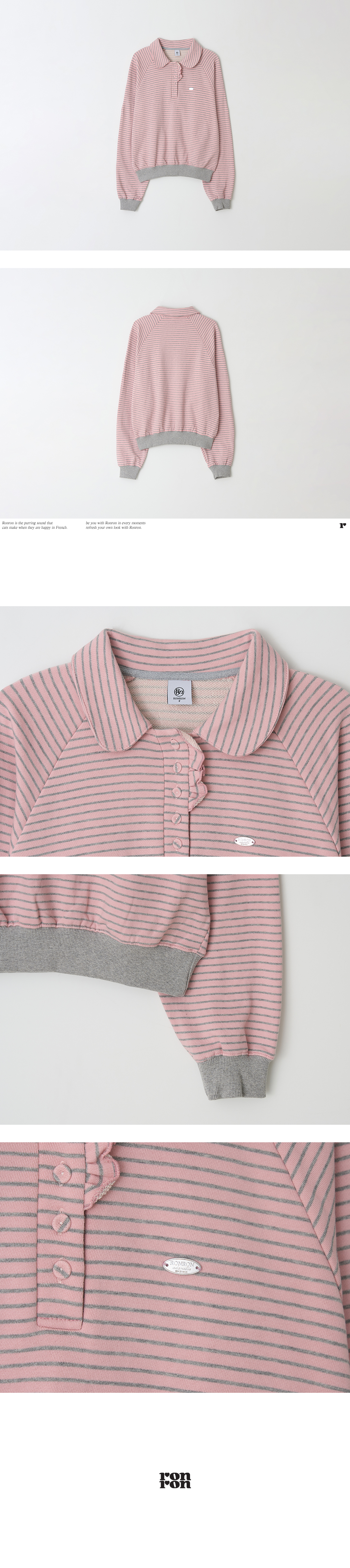 HENRYNECK FRILL POINT SWEATSHIRT PINK GREY STRIPE