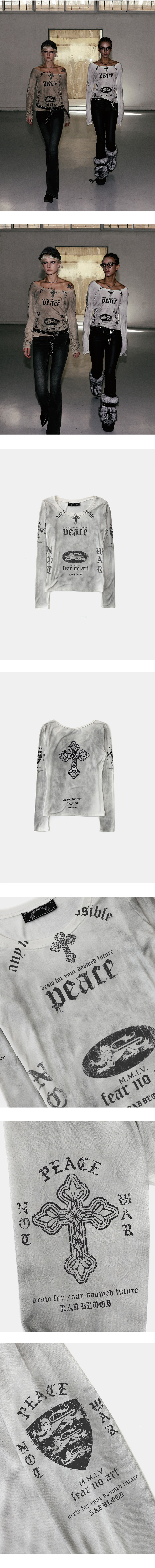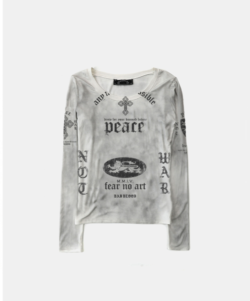 PEACE NOT WAR 루즈핏 티 - 더스티화이트
