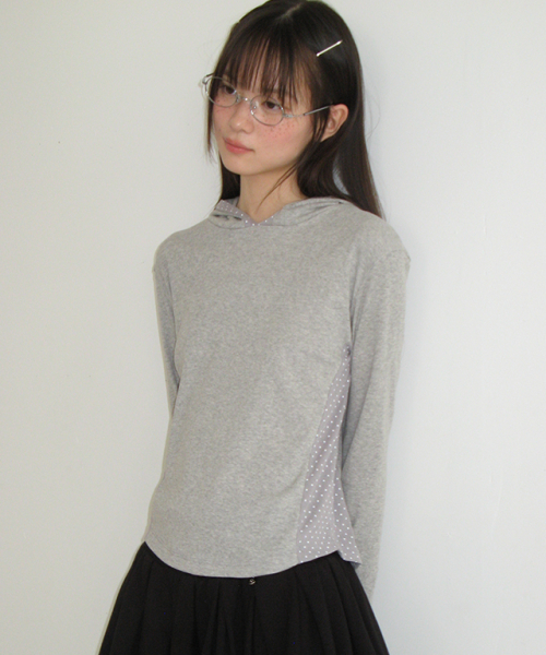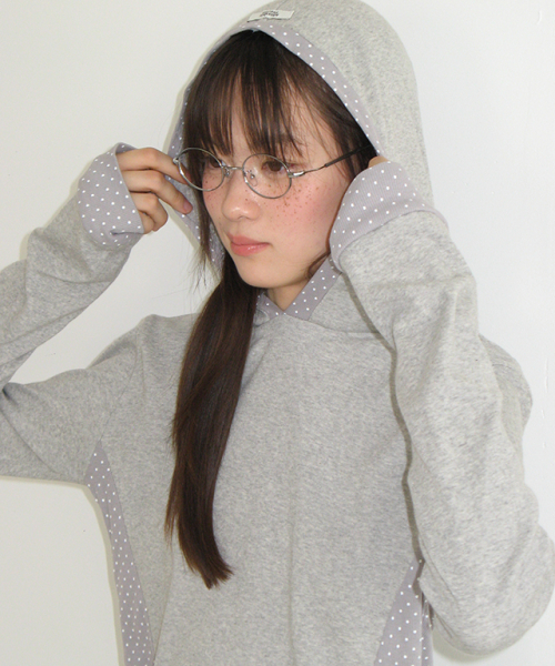 DOT PANEL SLIM HOODIE LONG SLEEVE GREY