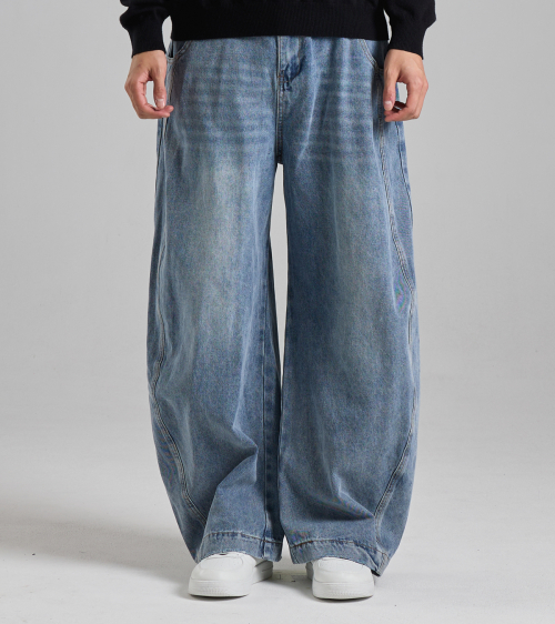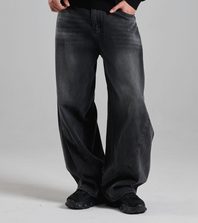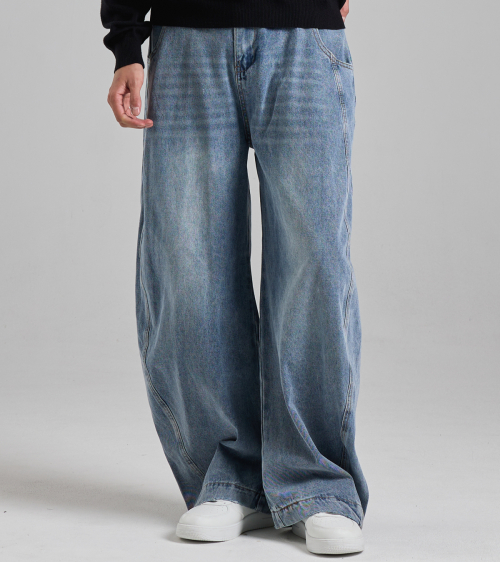 3D 입체 절개 커브드 데님 팬츠 (블랙)
