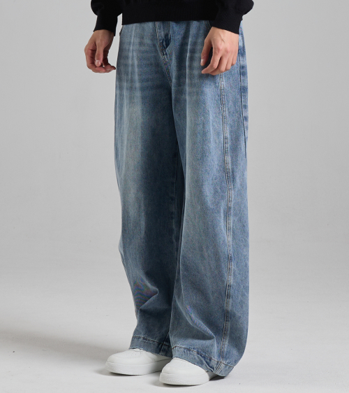빈티지 사이드 스티칭 데님 팬츠 (머드 블루)