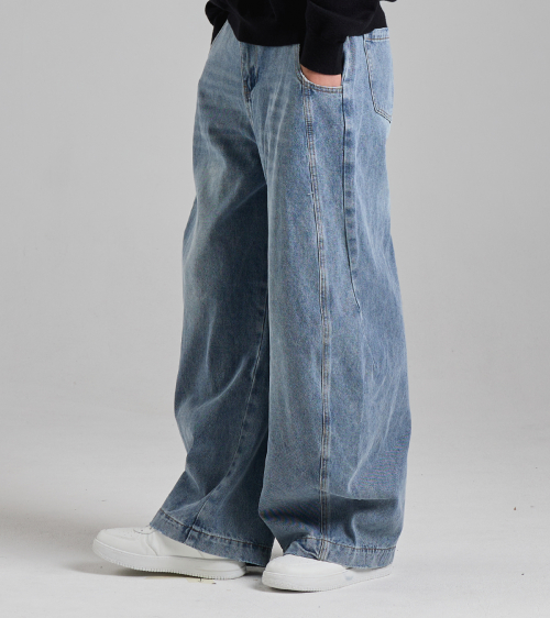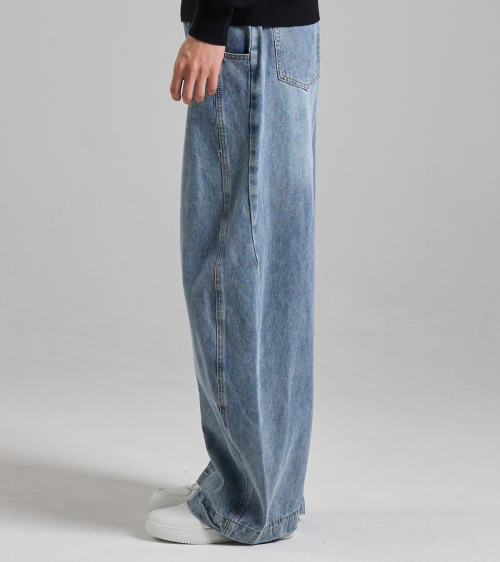 프론트 절개 빈티지 워싱 데님 팬츠 (라이트 블루)