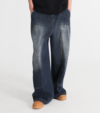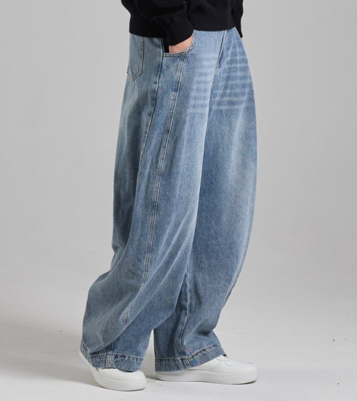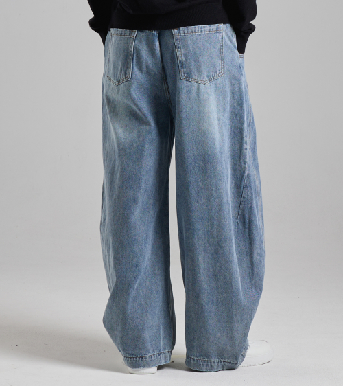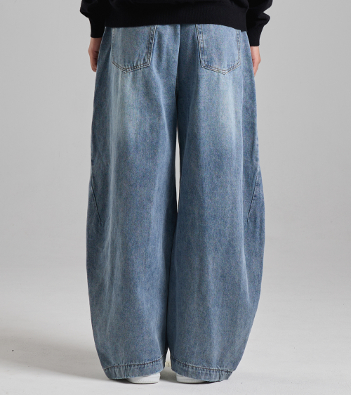백 스트랩 와이드 커브드 데님 팬츠 [딥블루]