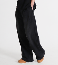 투핀턱 와이드 커브드 롱 데님 팬츠 [블랙]