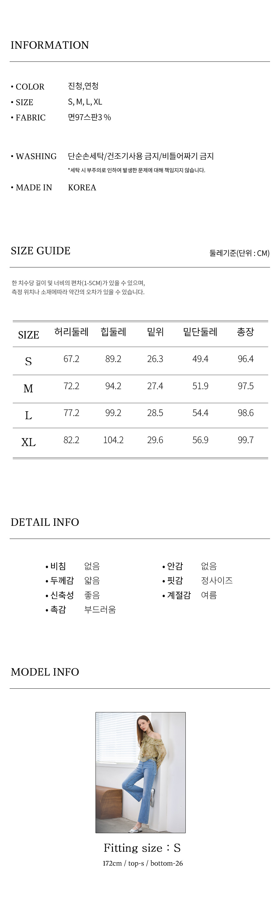 안나 인밴딩 썸머 통 부츠컷 청바지