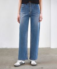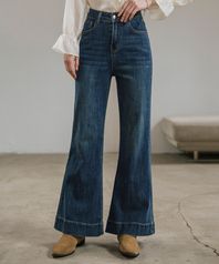 웨이스트 밴드 와이드 일자핏 데님 팬츠