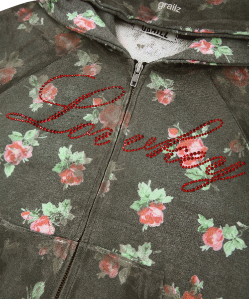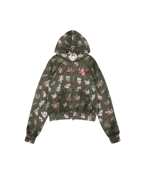 FLOWER DIRTY ZIP HOODIE [CHARCOAL]