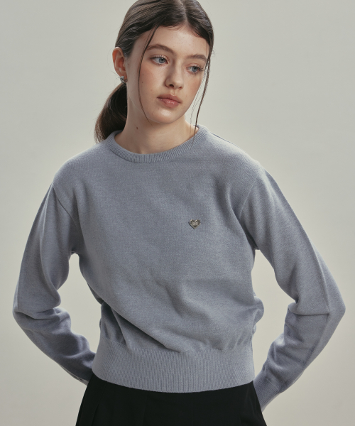 (W) 베이직 에센셜 워셔블 라운드 니트 GREY