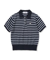 (W) 부클 스트라이프 카라 니트 NAVY