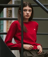 (W) 베이직 에센셜 워셔블 라운드 니트 RED