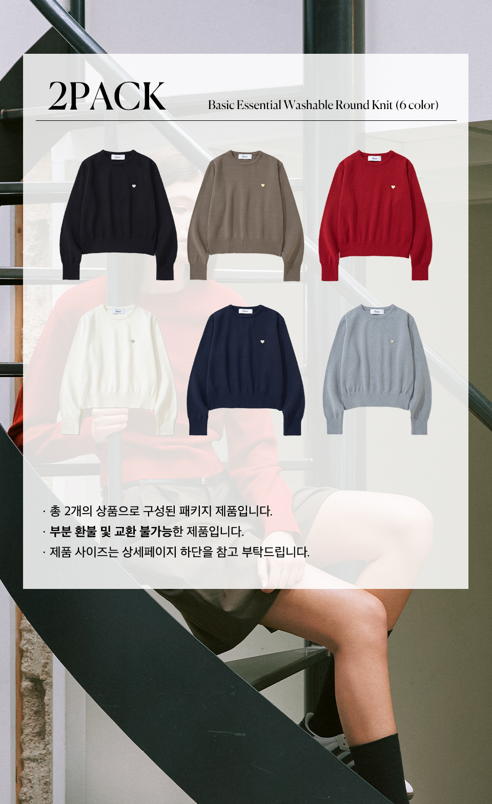 [2PACK] (W) 베이직 에센셜 워셔블 라운드 니트