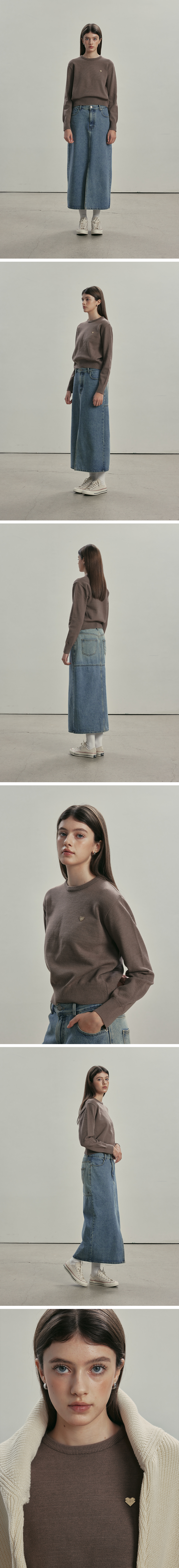 (W) 베이직 에센셜 워셔블 라운드 니트 MOCHA