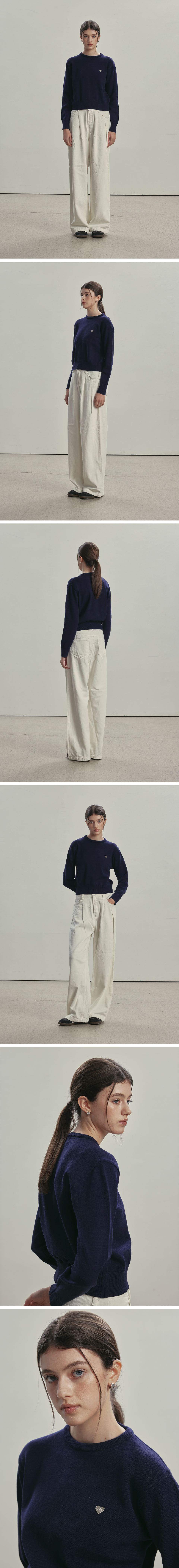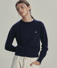 (W) 베이직 에센셜 워셔블 라운드 니트 NAVY