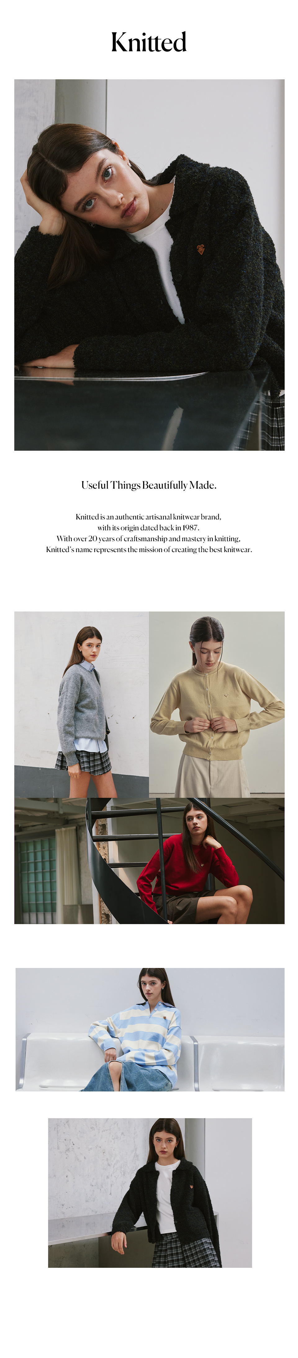니티드(KNITTED)는 'Useful things beautiful made(유용한 아름다운 것들을 만들자)'라는 슬로건으로, 제작 기반의 우수한 품질력으로 승부하는 브랜드입니다.