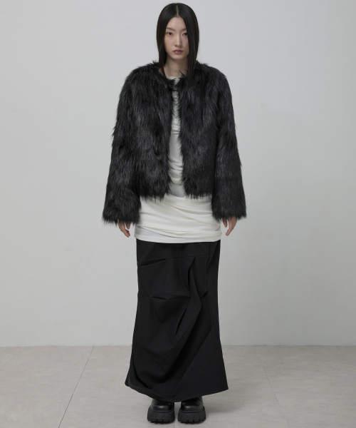 Asymmetrical Draped Layered Long Skirt (FL-256_Charcoal)