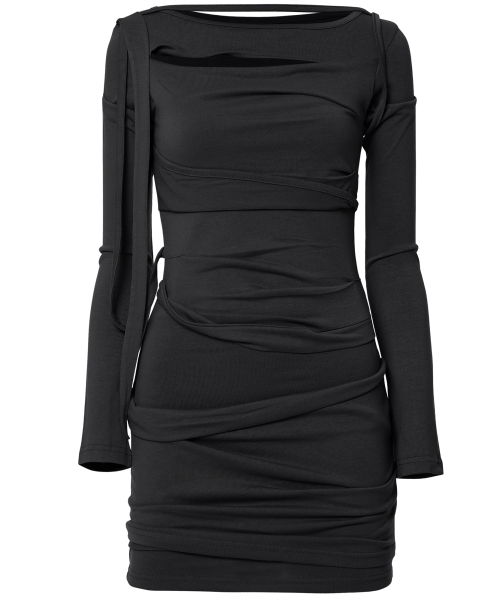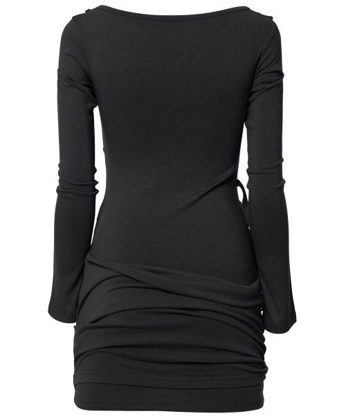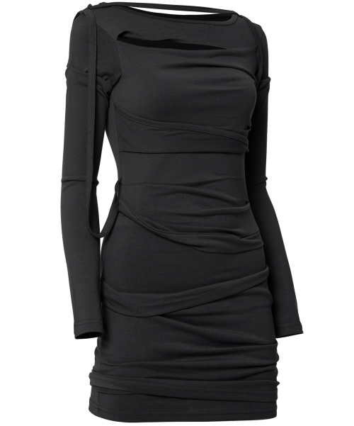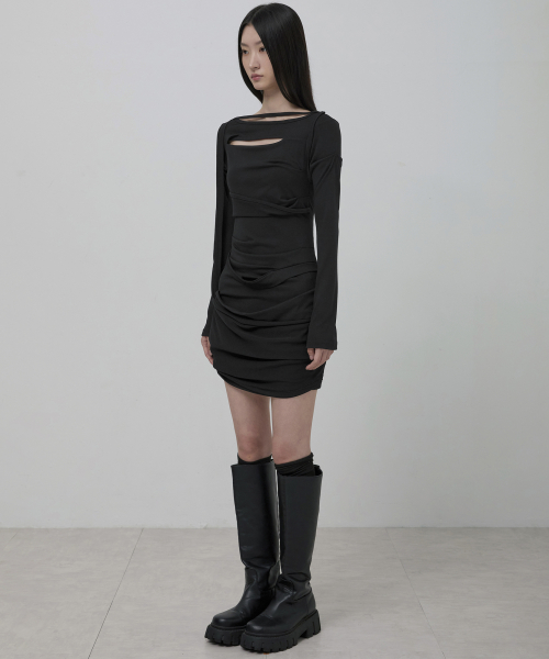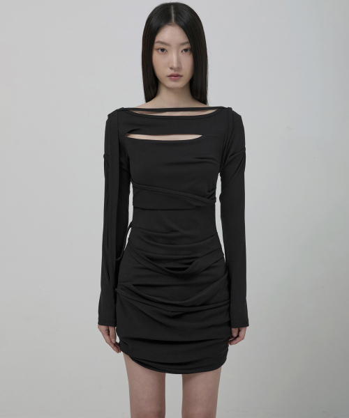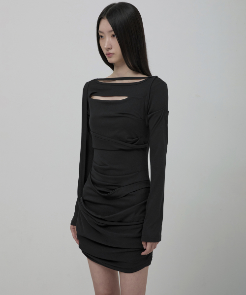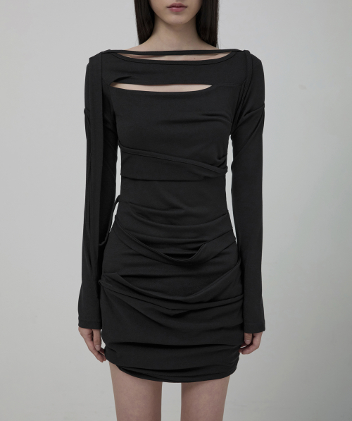 Asymmetrical Draped Long Dress (FL-196_Black)