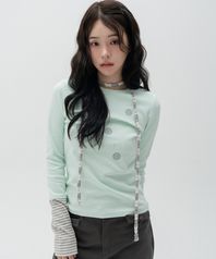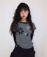 모티프 자수 스트라이프 레이어드 긴팔 티셔츠 BLACK