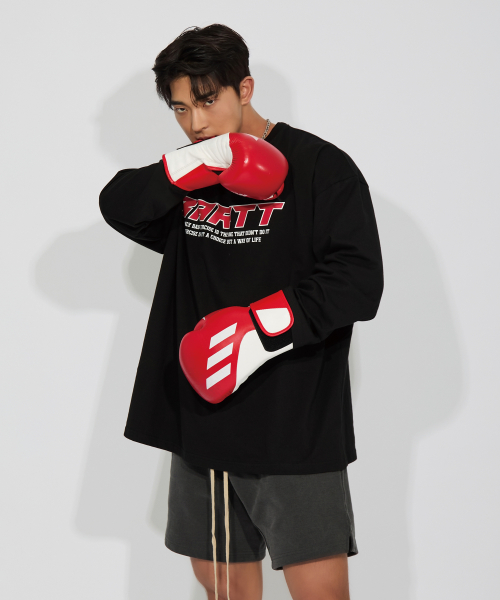 복싱 엠블럼 스포티 그래픽 롱 슬리브_블랙