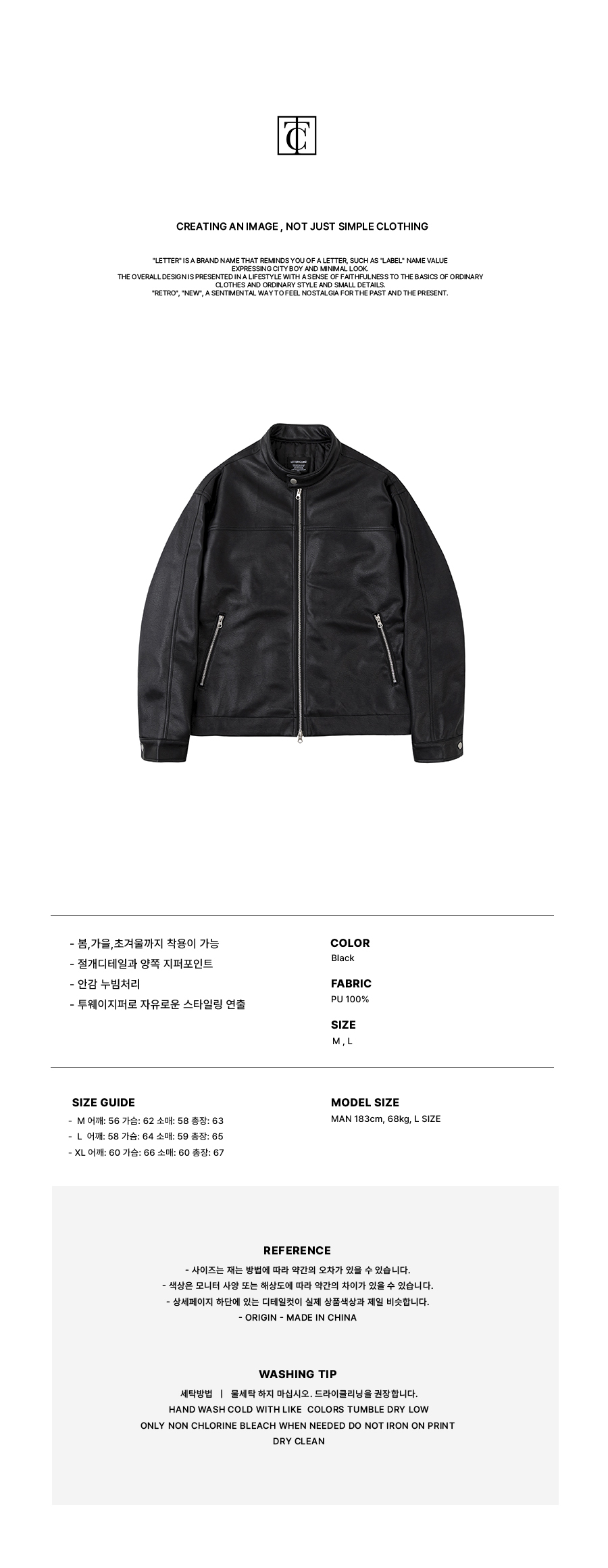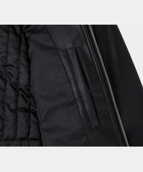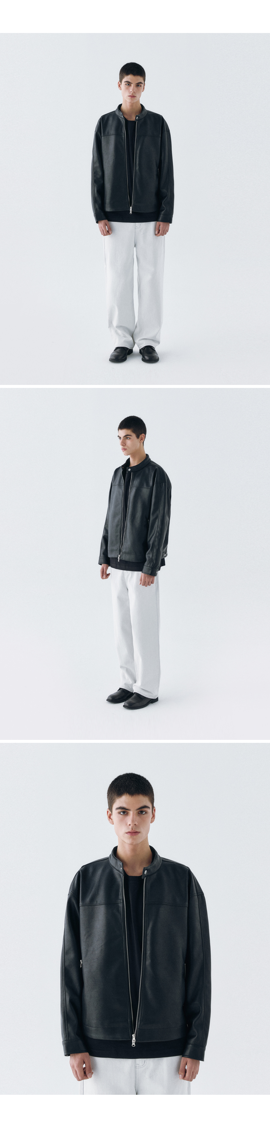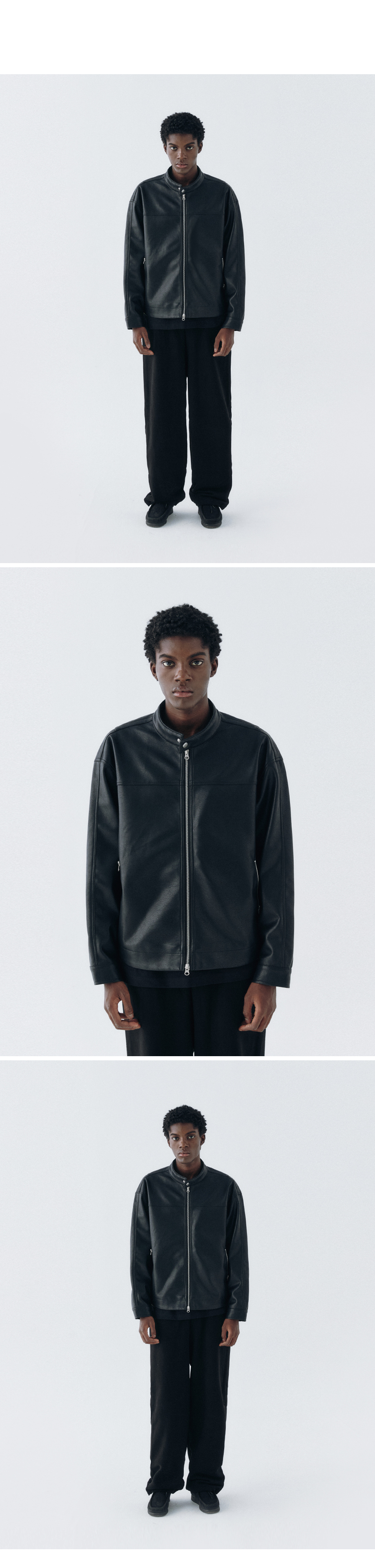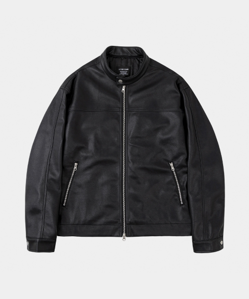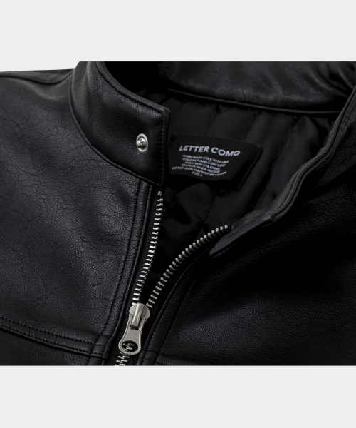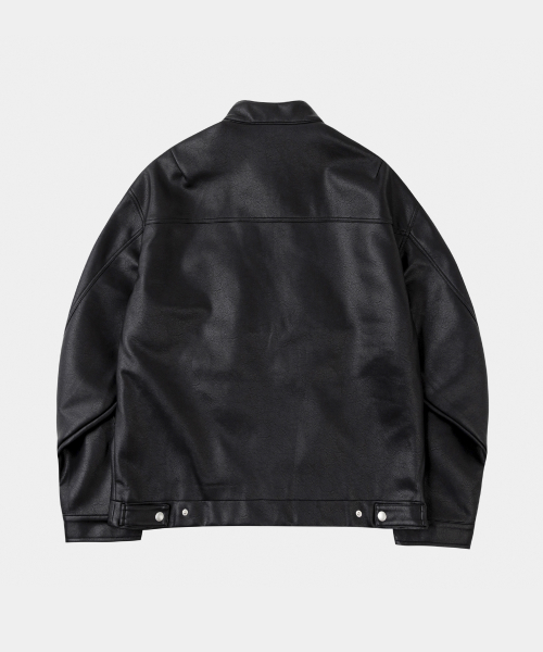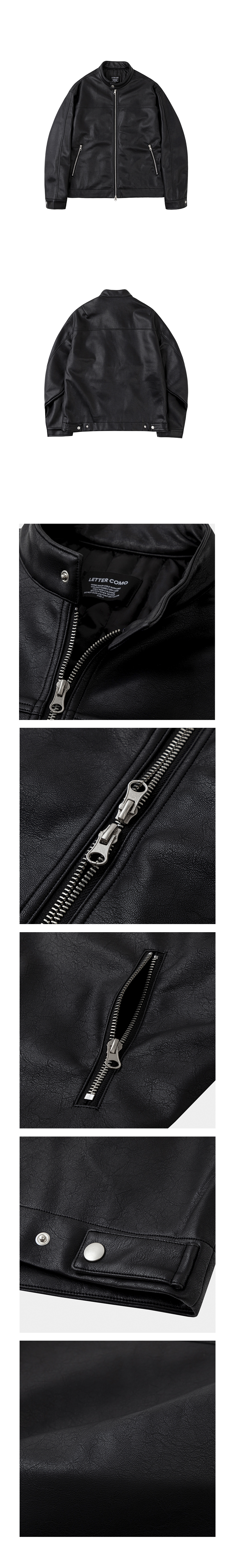 오버핏 미니멀 레이싱 바이커 블루종 레더 자켓 [블랙]