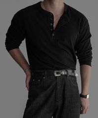 패턴 레귤러 헨리넥 니트티 [블랙]