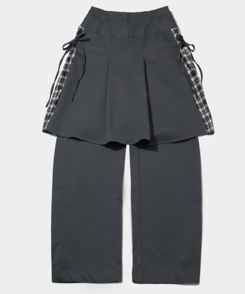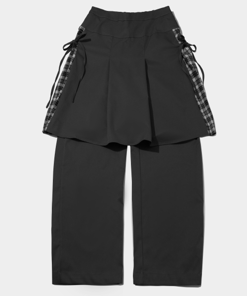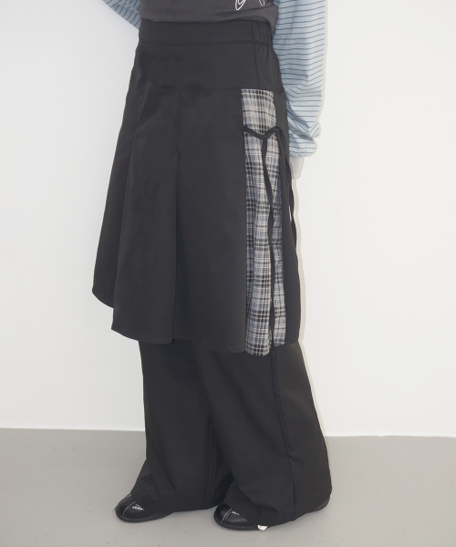 올데이 데이지 옆선 체크배색 미디 스커트 레이어드 와이드 핏 치마바지_2COLOR