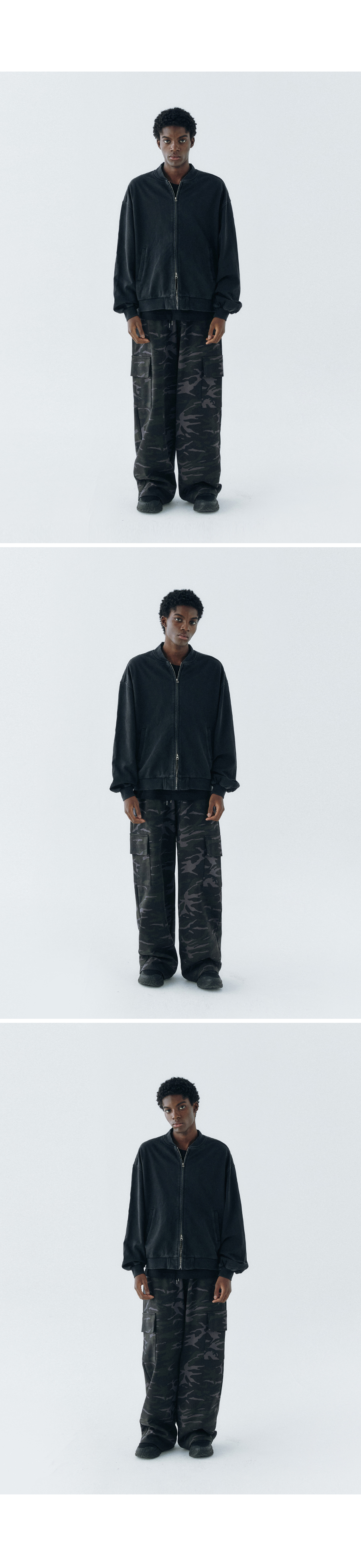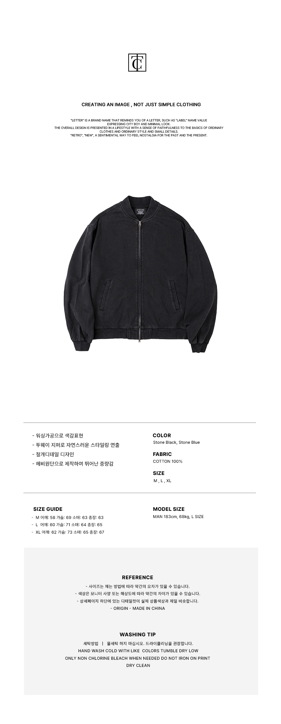 헤비코튼 가먼트 스타디움 바시티 자켓 스톤블랙