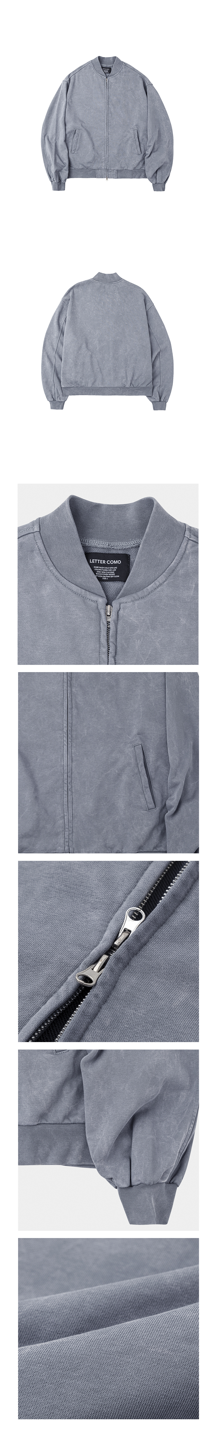 헤비코튼 가먼트 스타디움 바시티 자켓 스카이블루