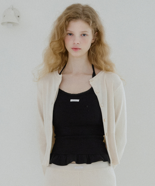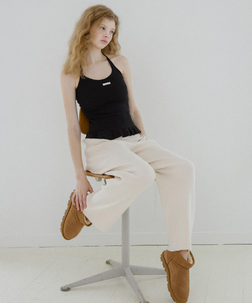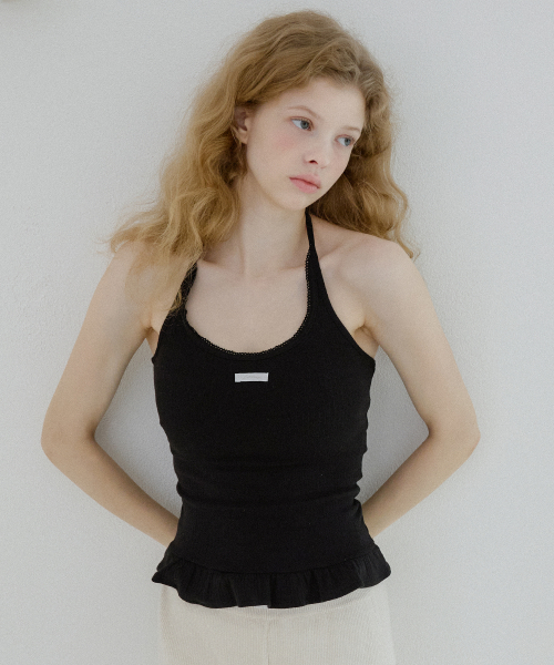레터즈 프릴 라벨 홀터넥 탑 ( 블랙 )