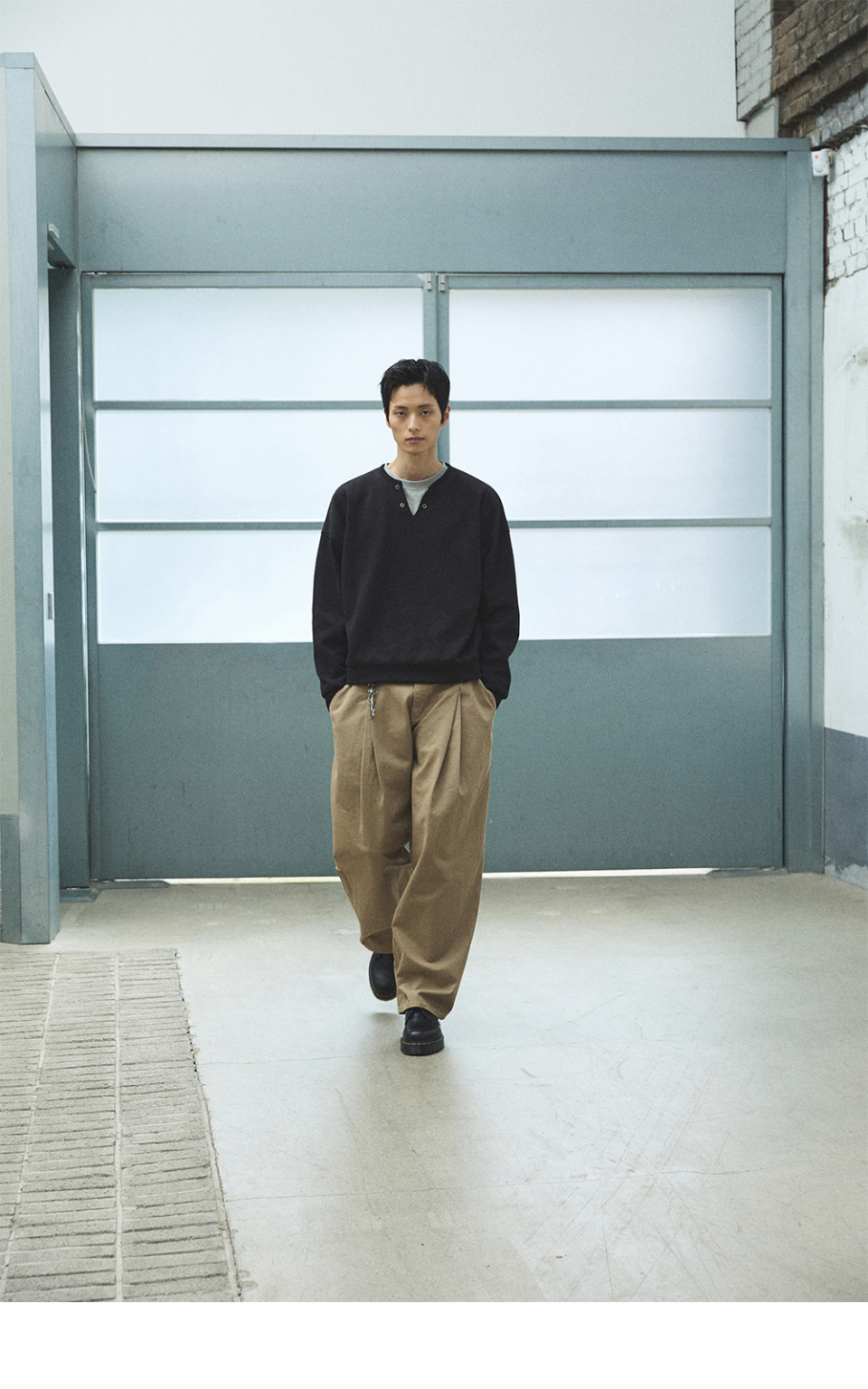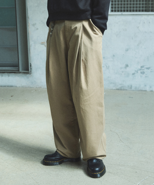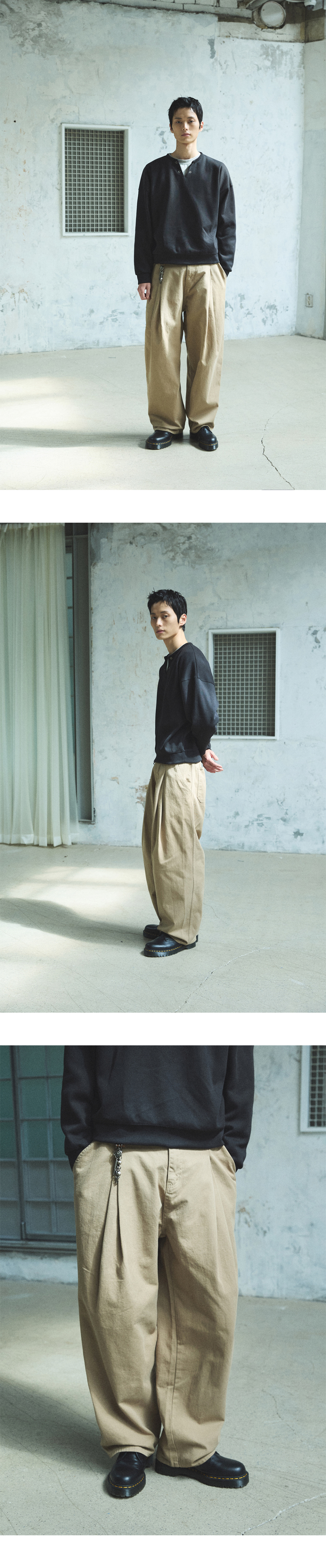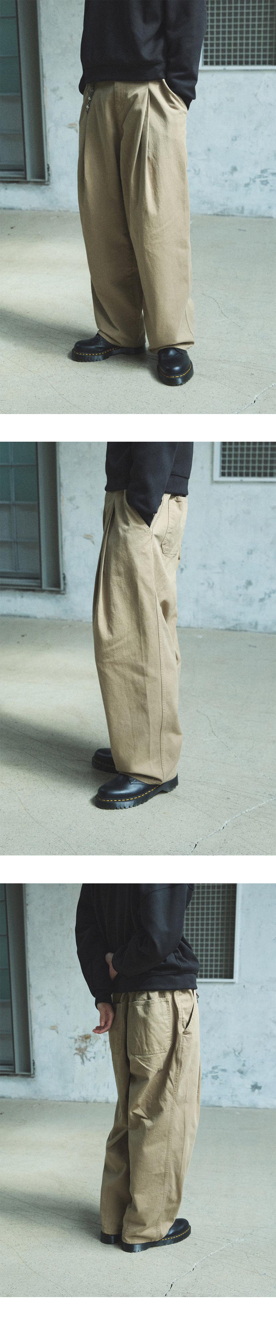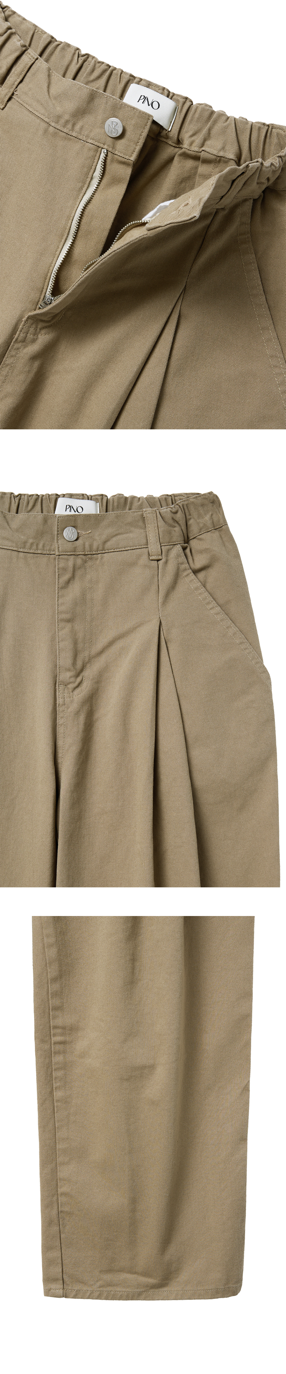 958 투턱 와이드 코튼 팬츠 - 탄베이지