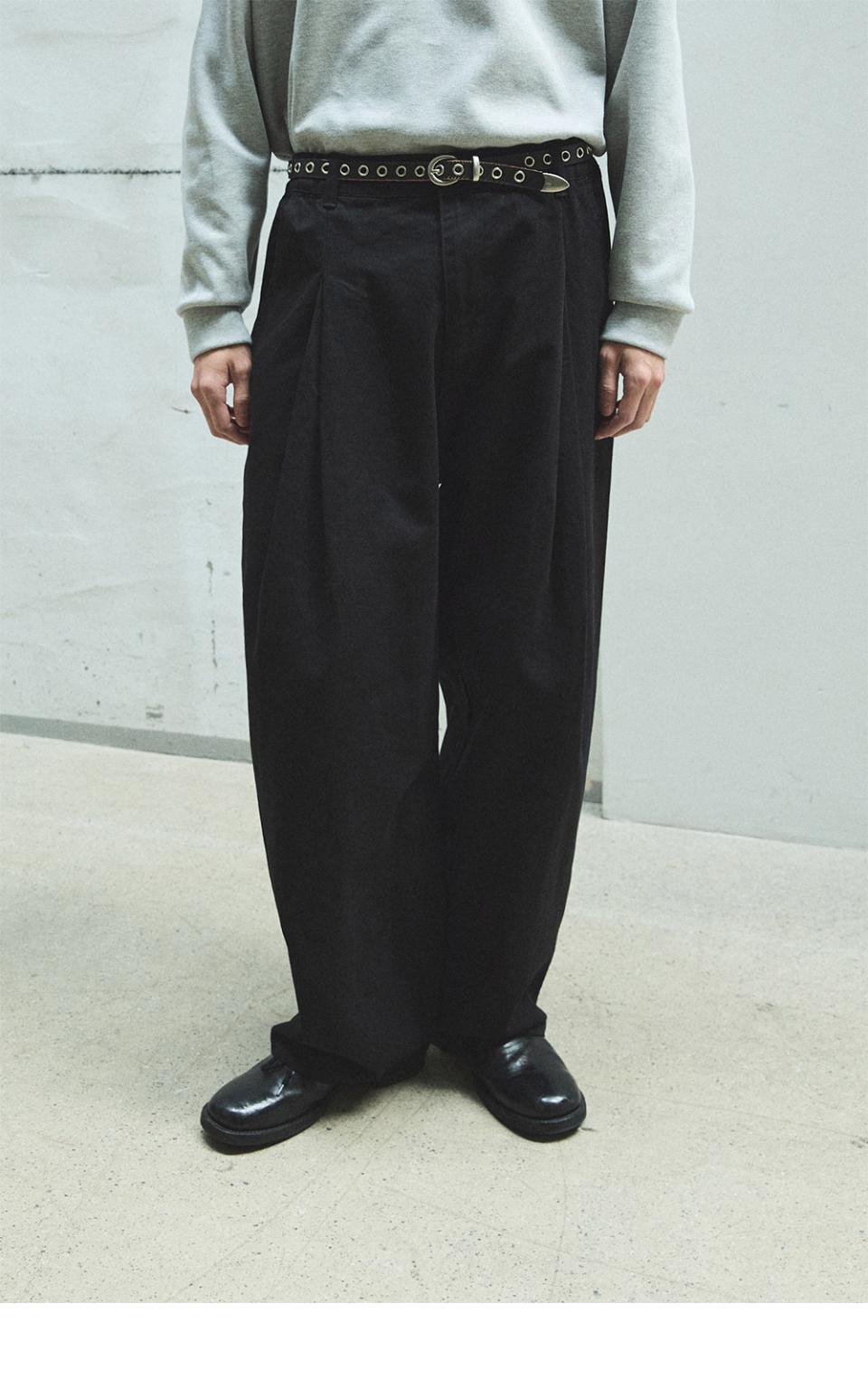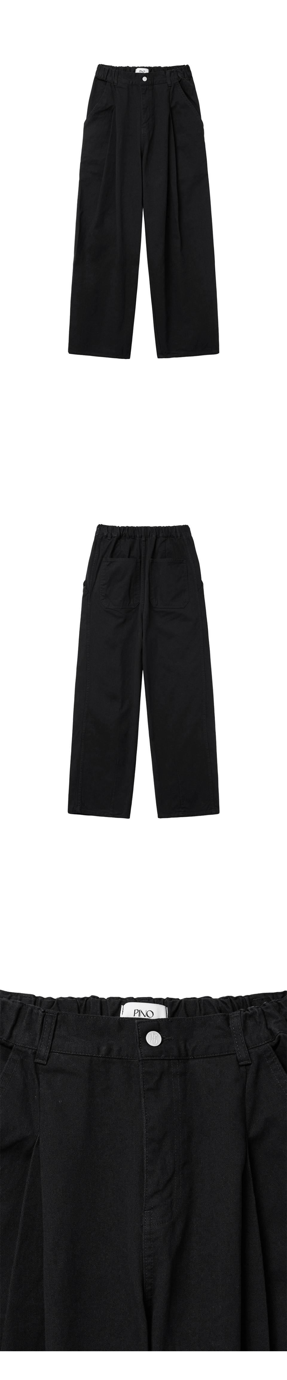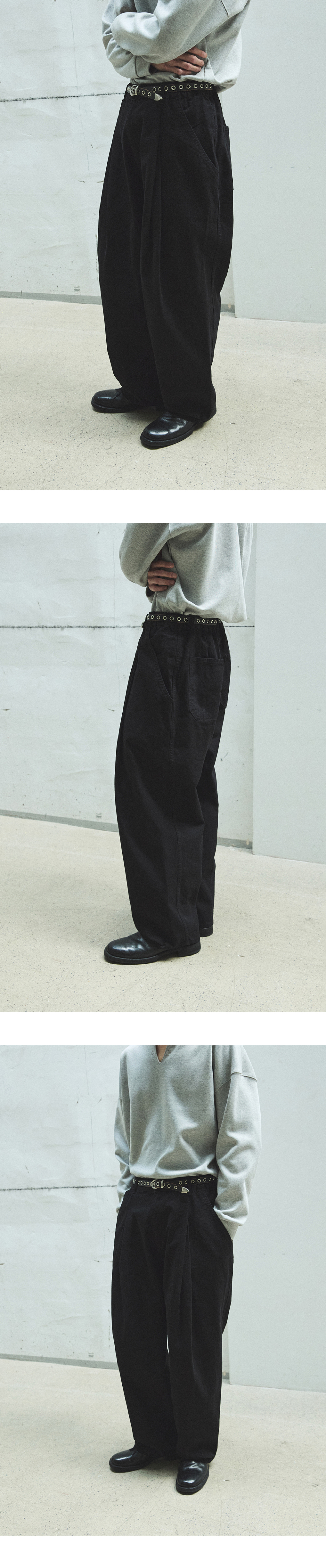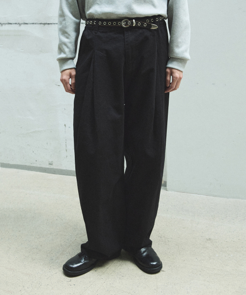 958 투턱 와이드 코튼 팬츠 - 블랙
