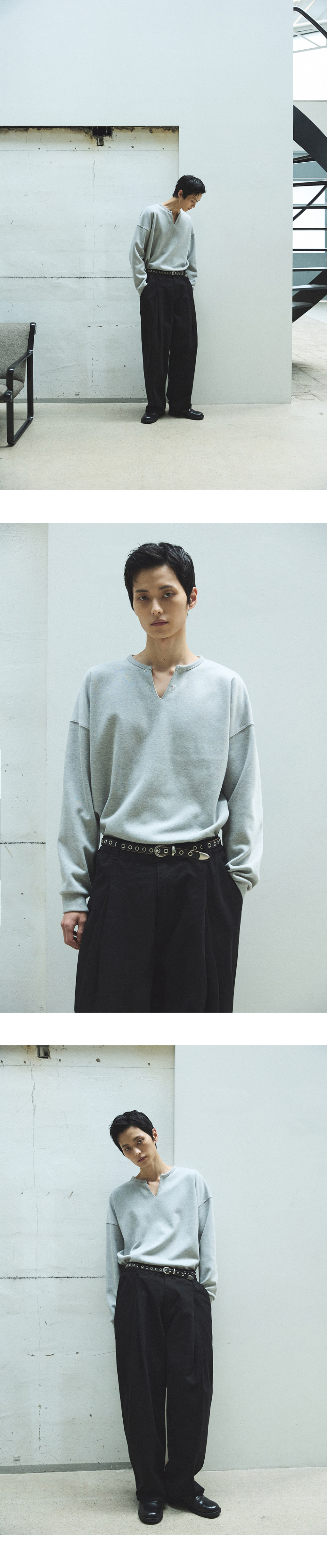 리브드 헨리넥 긴팔 티셔츠[M/GREY]