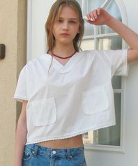 TORCHON LACE POINTED V NECK HALF BLOUSE WHITE