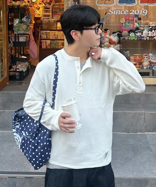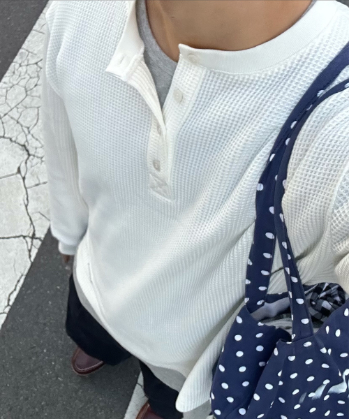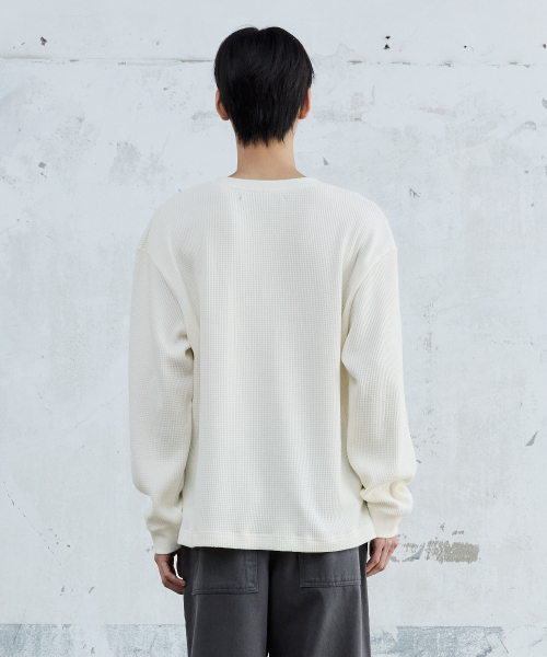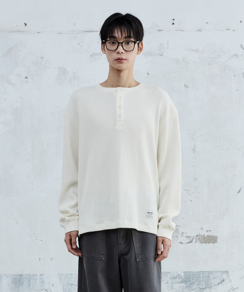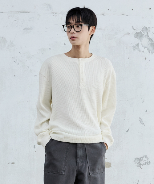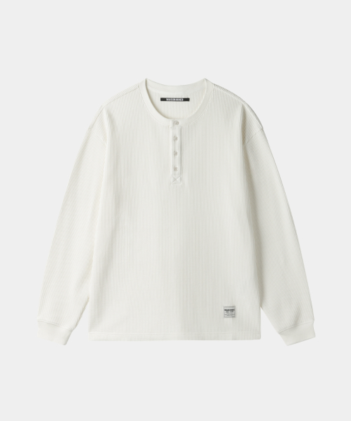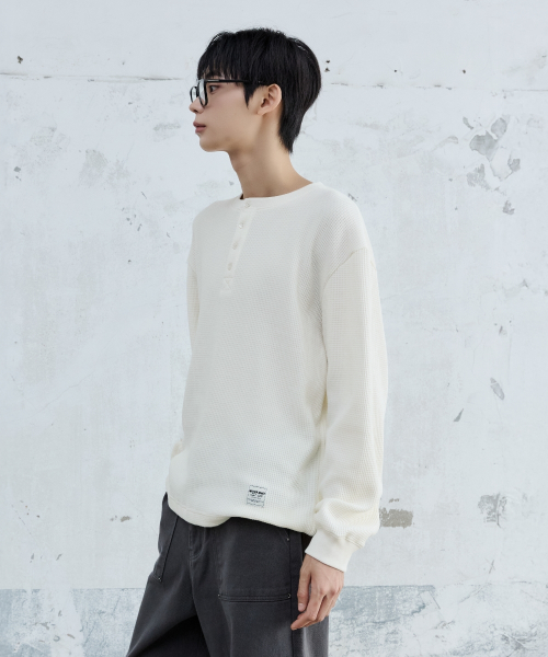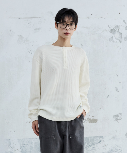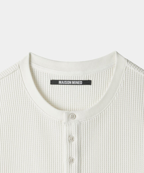 BASIC WAFFLE HENLEY NECK CREAM