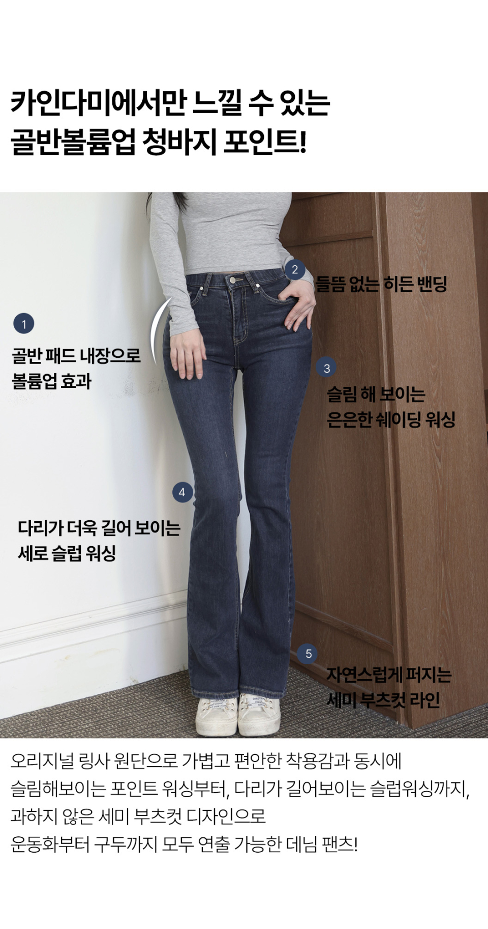 골반볼륨업 로우웨스트 중진청 세미 부츠컷_골반뽕 청바지