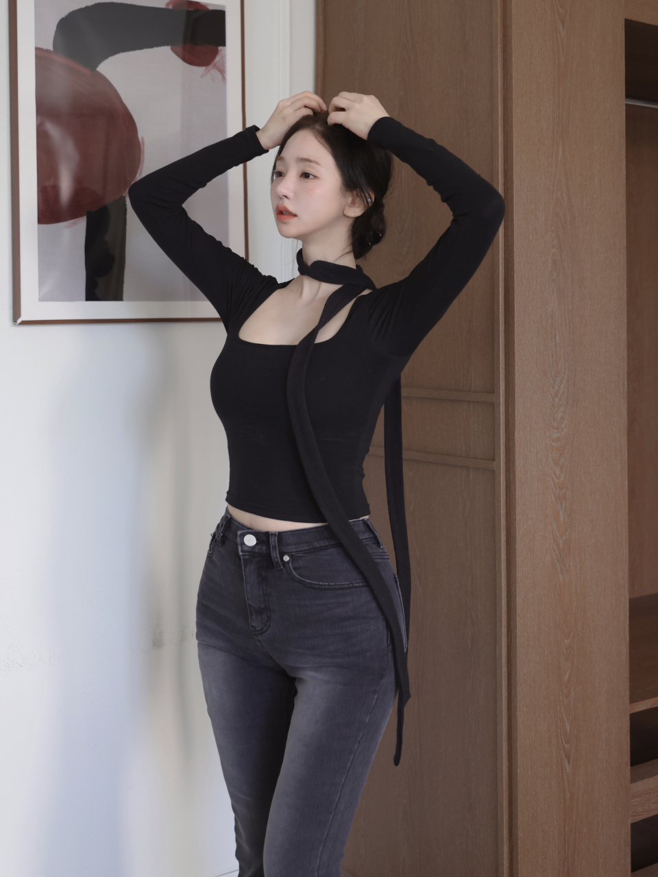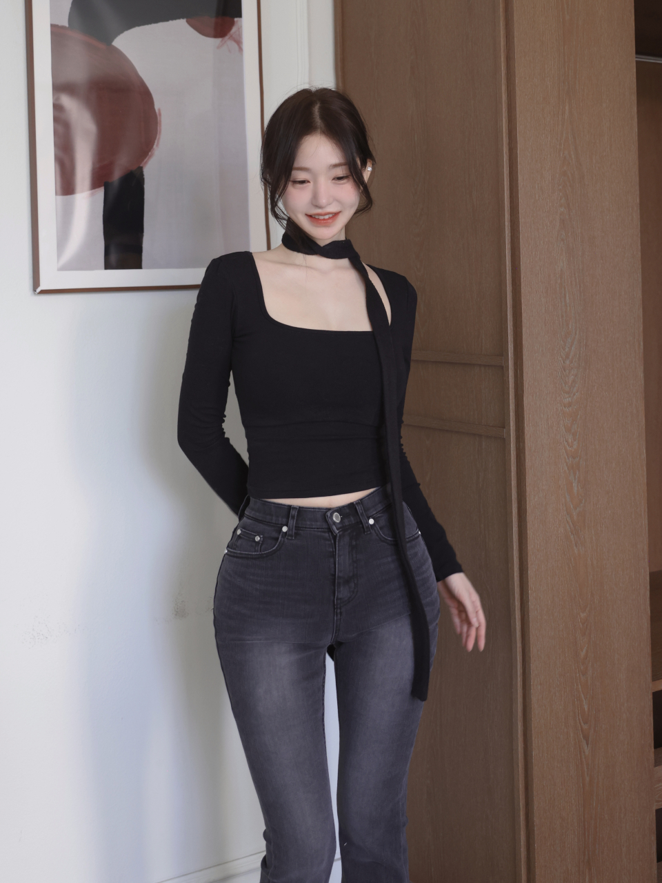 골반볼륨업 하이웨스트 세미 부츠컷_골반뽕 청바지_흑청