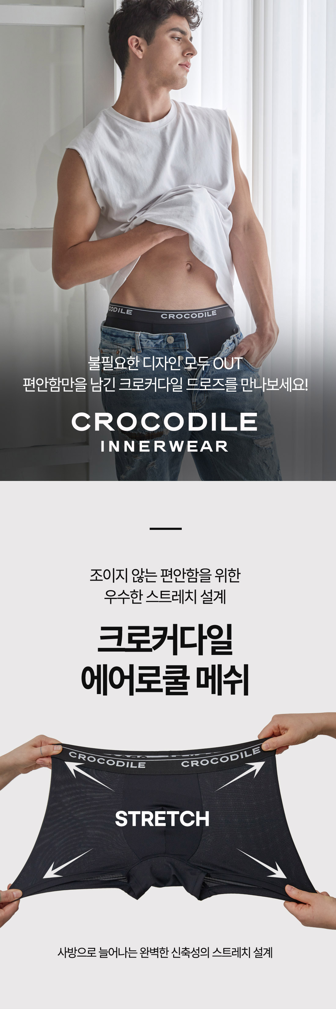 크로커다일 이너웨어(CROCODILE INNERWEAR)의 시그니처 심리스 라인은 날아갈 듯 가볍게, 안 입은 듯 편안하게 그리고 매일 아침의 상쾌함을 선사하는 데일리 언더웨어 브랜드입니다.