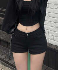 골반볼륨업 로우웨스트 블랙 숏팬츠_골반뽕 청바지