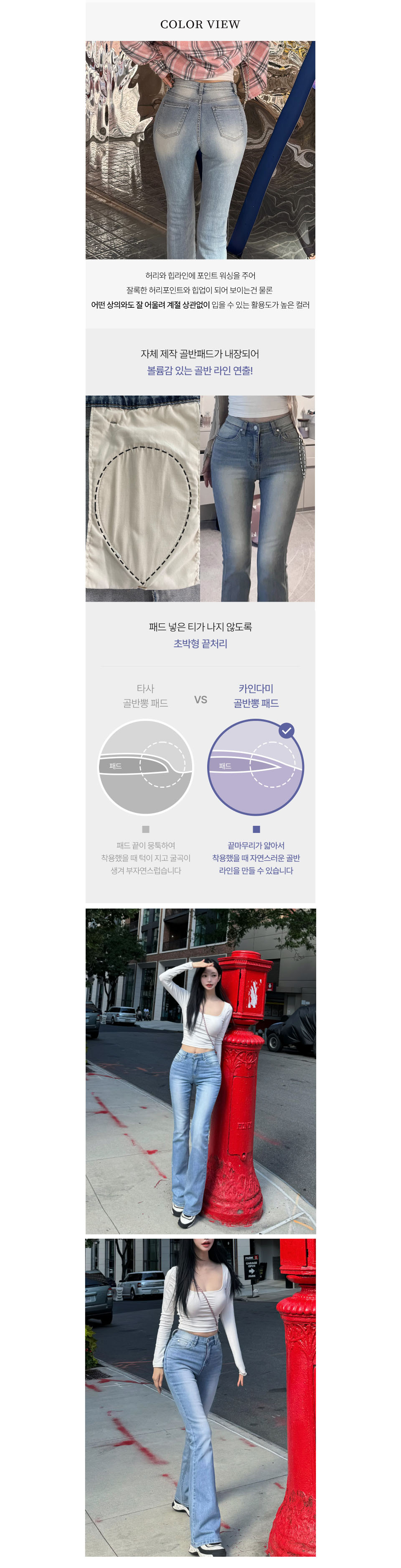 골반볼륨업 중진청 절개 와이드 부츠컷_골반뽕 청바지