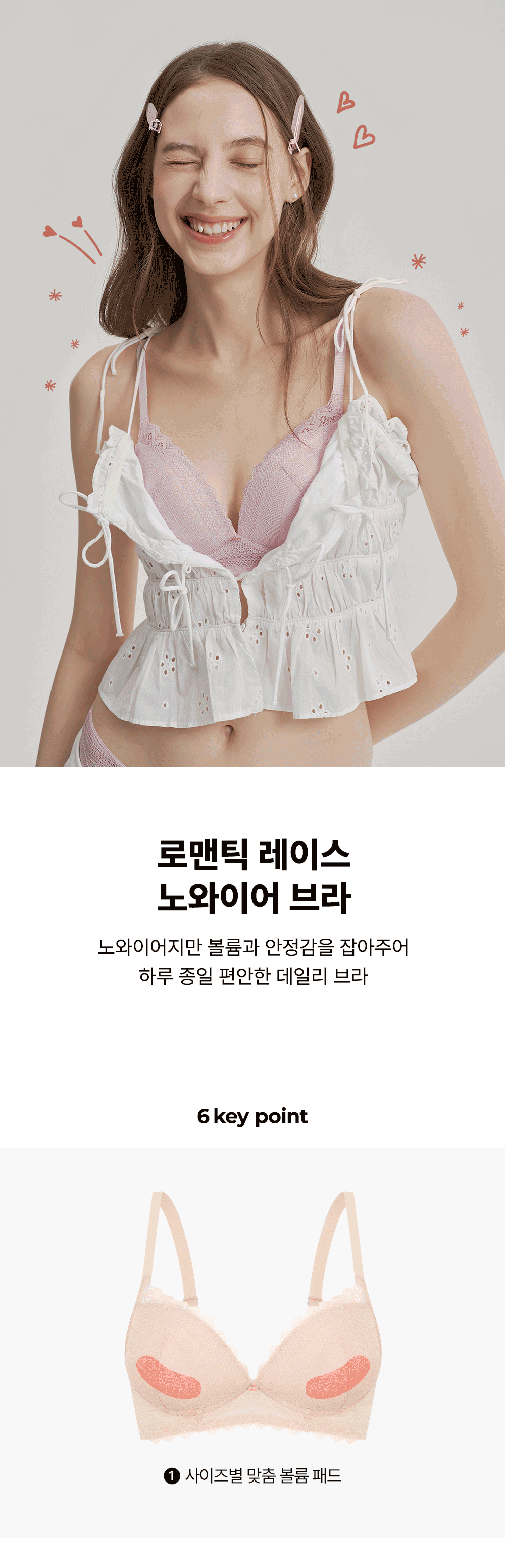로맨틱 레이스 노와이어 브라 (4colors)