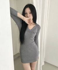 패니 브이넥 골지 슬림핏 원피스 (2컬러)