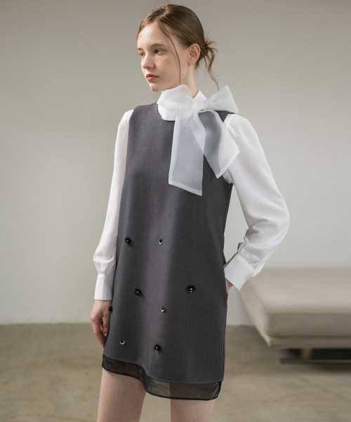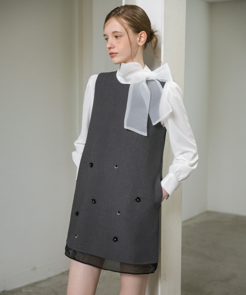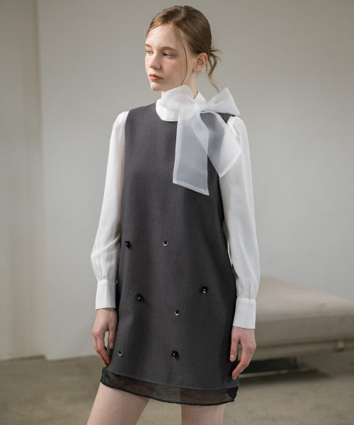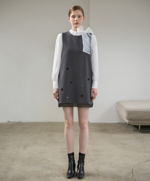 아플리케 슬리브리스 미니원피스