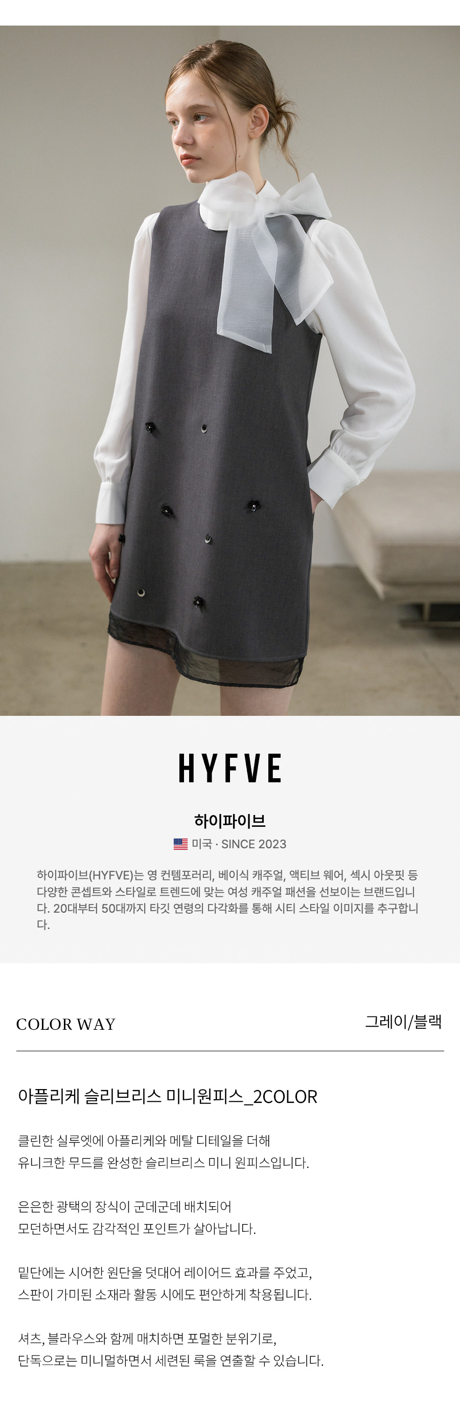 하이파이브(HYFVE)는 영 컨템포러리, 베이식 캐주얼, 액티브 웨어, 섹시 아웃핏 등 다양한 콘셉트와 스타일로 트렌드에 맞는 여성 캐주얼 패션을 선보이는 브랜드입니다. 20대부터 50대까지 타깃 연령의 다각화를 통해 시티 스타일 이미지를 추구합니다.