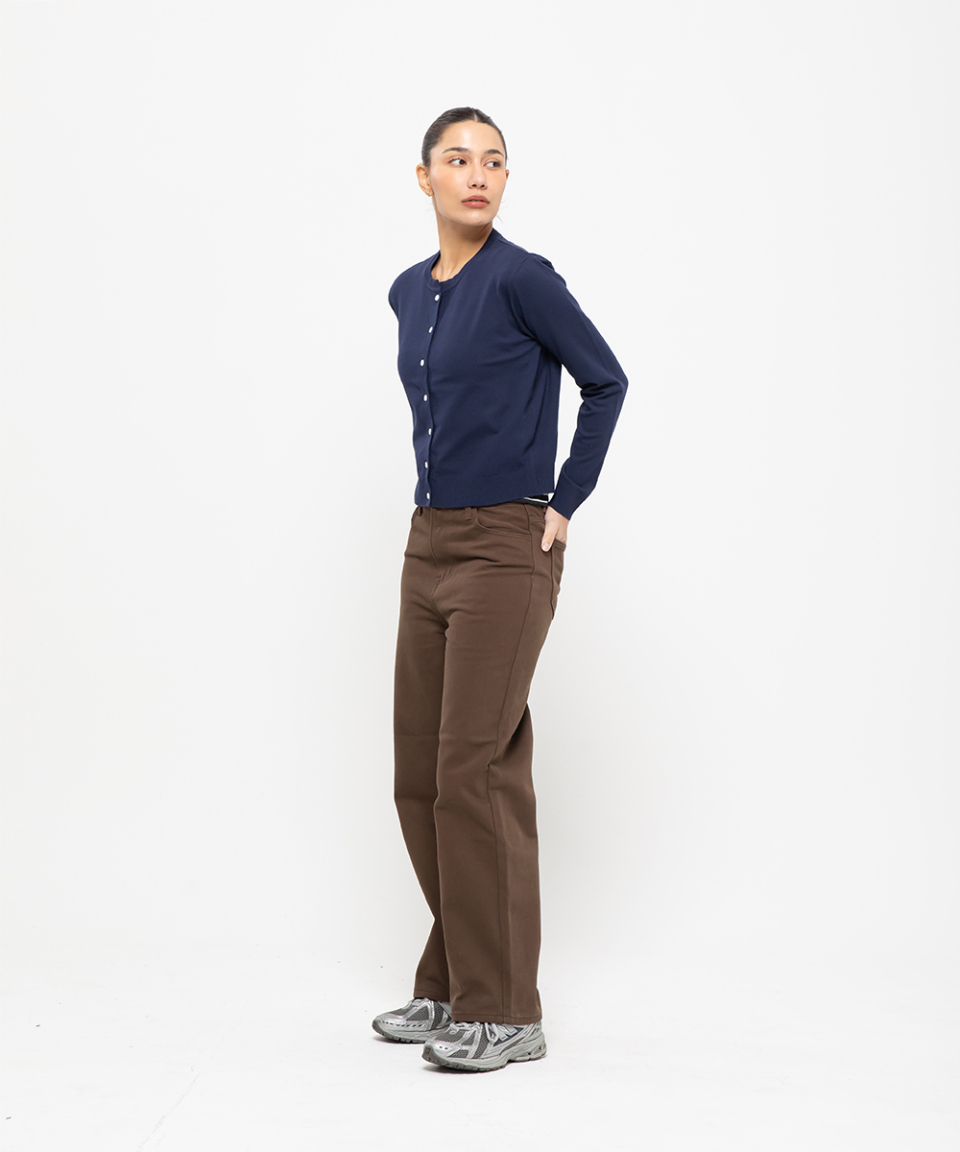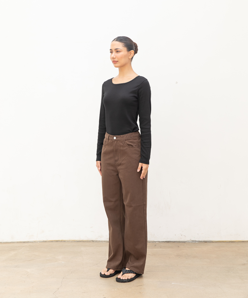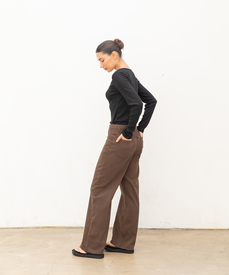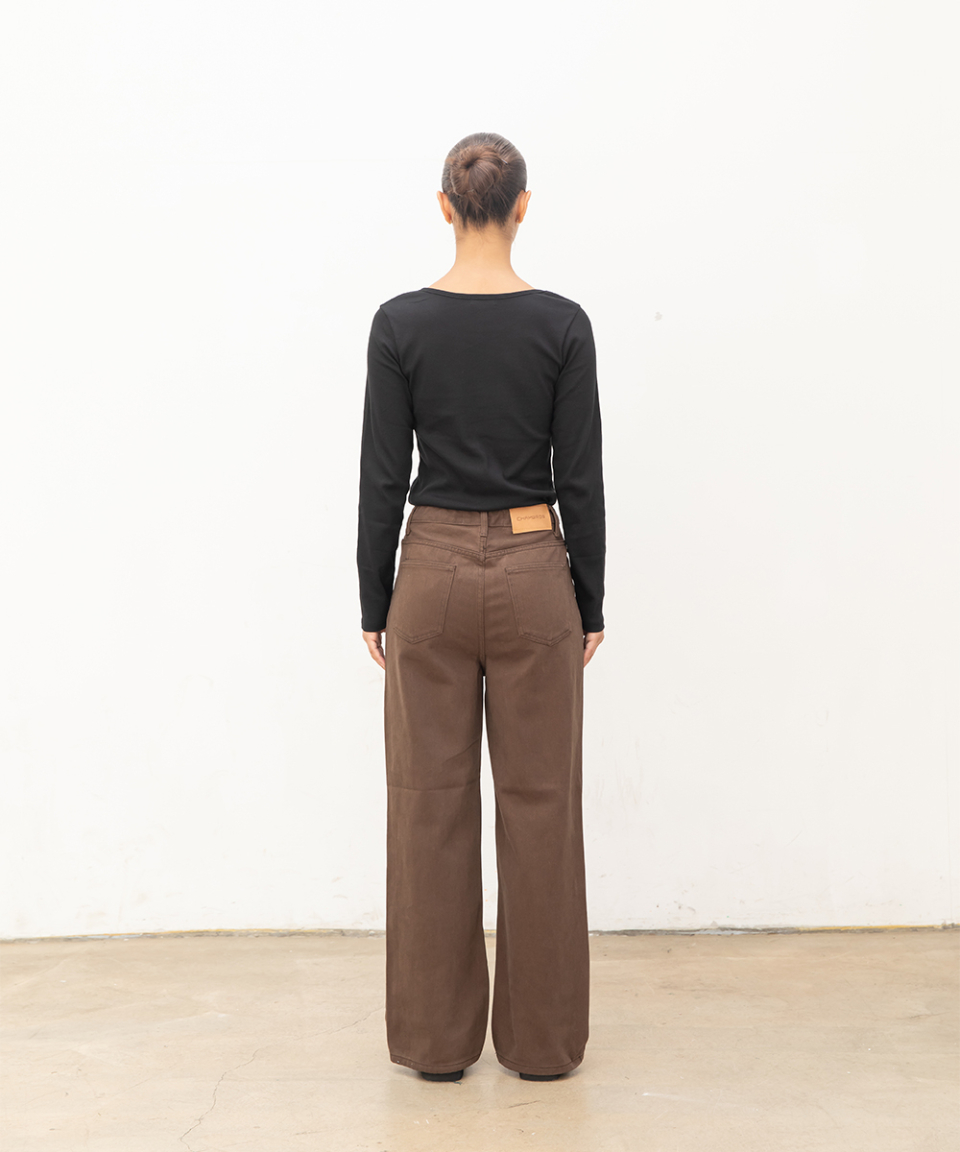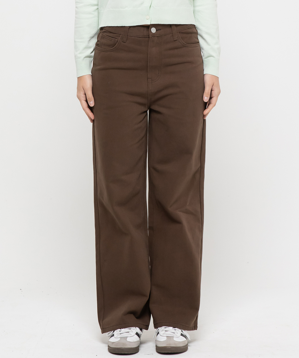 우먼즈 세미 와이드 워싱 데님팬츠[코튼 브라운]