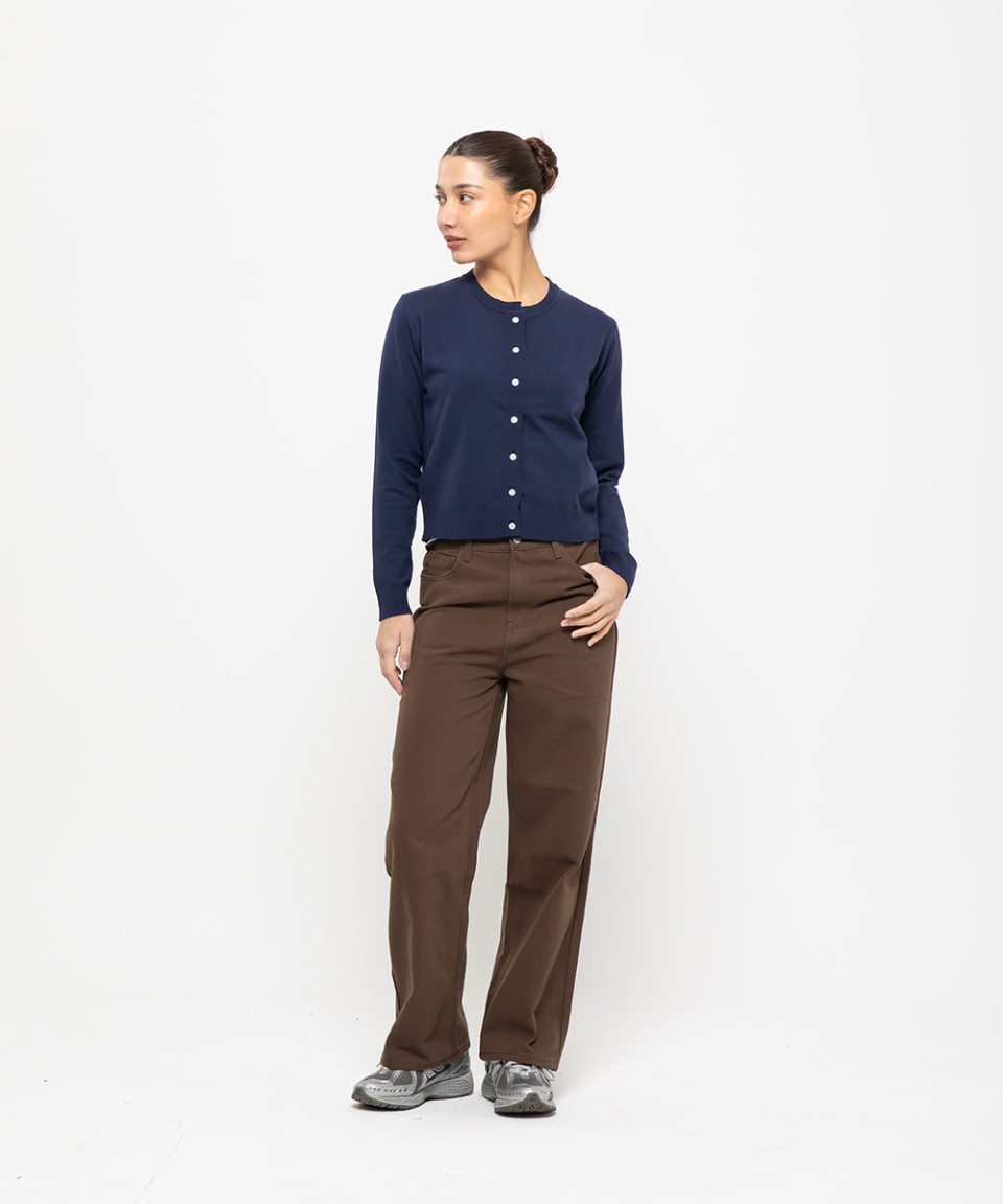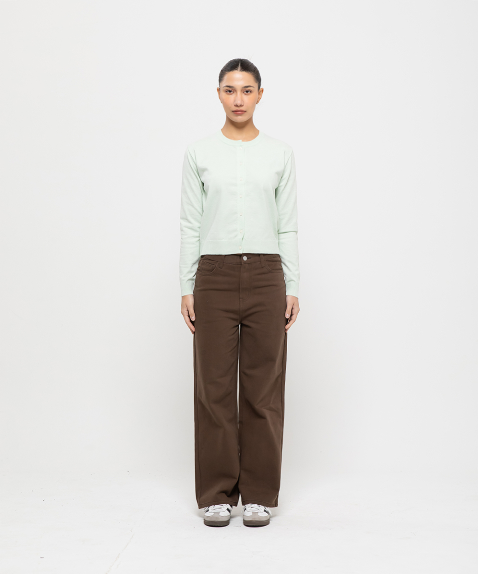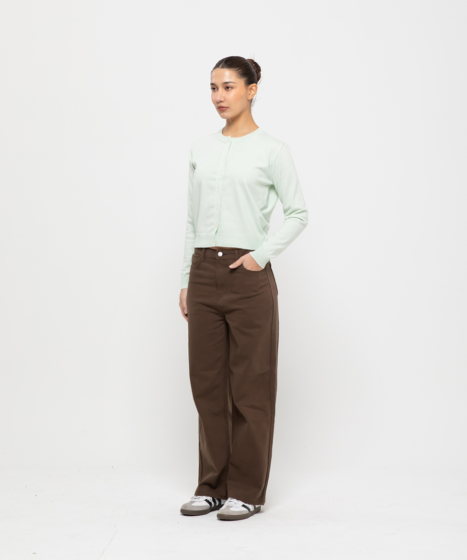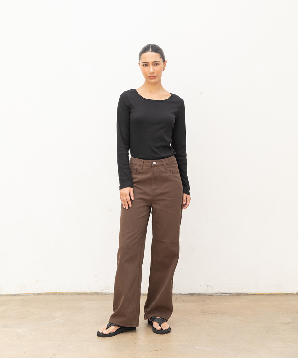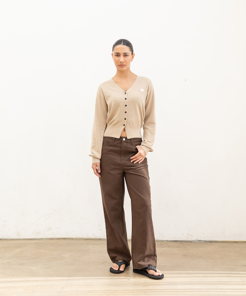 우먼즈 세미 와이드 워싱 데님팬츠[코튼 브라운]