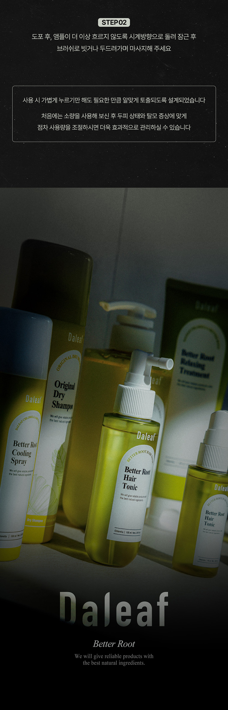 달리프(DALEAF)는 하루하루가 가치있는 라이프스타일을 제안하며 최상의 자연 성분으로 믿을 수 있는 제품을 만들어 건강하고 소중한 아름다움을 드리기 위해 노력하는 브랜드입니다.